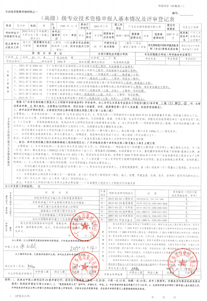 公示內容:《高級專業技術資格申報人基本情況及評審登記表》。 若對下列同志的申報資料有異議,可電話或書面向公司人力資源部反映: 聯系人:王曉燕,聯系電話:0769-28820093 申報路橋專業高級工程師資格人員名單:張元欽